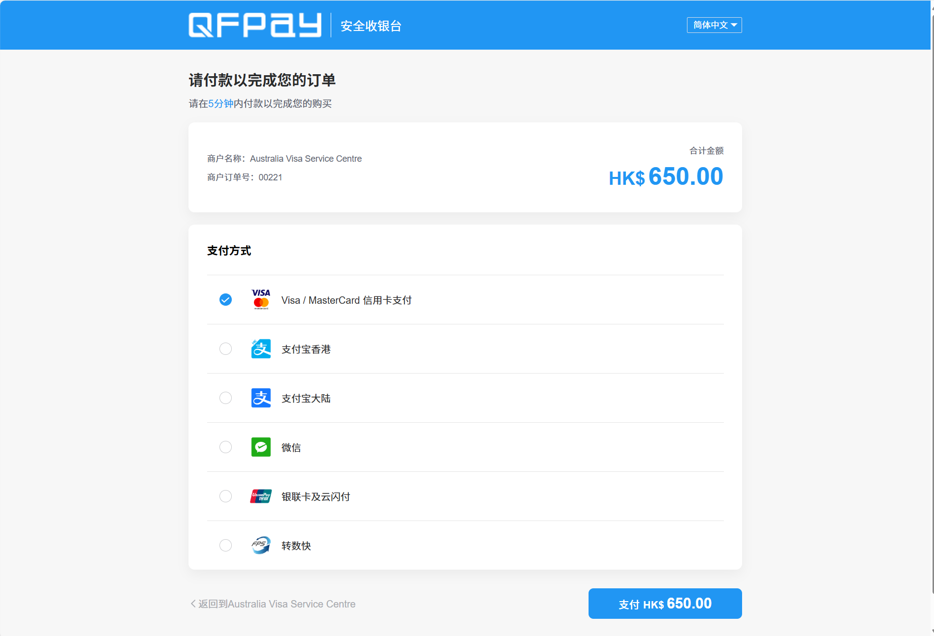 選擇支付方式